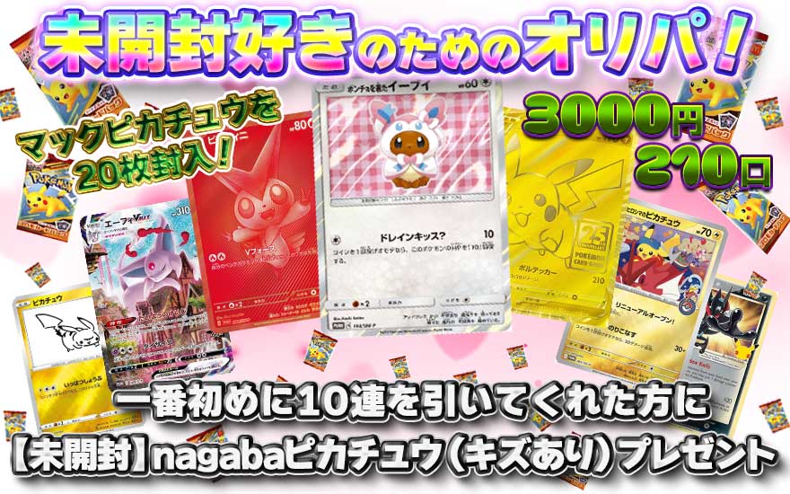 2025.11.09未開封オリパ ¥3,000 【未開封好きのためのオリパ!】 3000円✖️210口 大当たり🎯 ポンチョイーブイ 争奪戦ビクティニ ゴールデンピカチュウV 中当たり エーフィ ヒロシマのピカチュウ nagabaピカチュウ マックピカチュウを20枚封入! 一番初めに10連を引いてくれた方に【未開封】nagabaピカチュウ(キズあり)をプレゼント!! 未開封オリパ個 お買い物カゴに追加 商品コード: oripa-004 カテゴリー: オリパ, ポケモン, 全ての商品 タグ: イーブイ, エーフィ, ピカチュウ, ビクティニ 関連商品 ガールズオリパ ¥5,000 お買い物カゴに追加 TAGTEAMオリパ ¥10,000 お買い物カゴに追加 30周年の前に25周年を集めよう! ¥3,000 お買い物カゴに追加